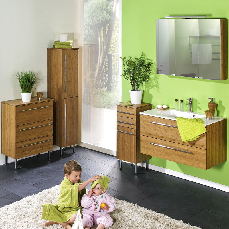Badezimmer Hochschrank »bali« Bambus massiv seidenmatt lackiert