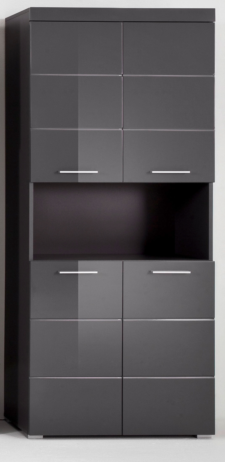 Bad Schrank Midischrank Hochglanz grau Badezimmer Kommode Badmöbel