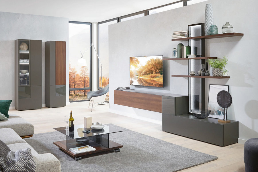 Moebel huelsta wohnzimmer. Das sorgt dafuer dass der fernseher optimal in szene gesetzt wird. Hochglanzlack grau echtholz eiche oder nussbaum bis hin zum boxspring bett mit vielen hundert kombinationsmoeglichkeiten aus kopfteil design und polsterstoffen nach wahl. Kommen sie in unser huelsta studio in fuerth und vergleichen sie ihre vorstellung und unsere ausstellung.