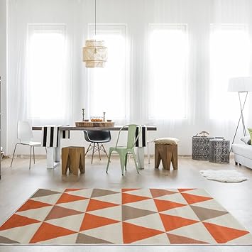 Webteppich Kurzflor Wohnzimmer Indoor Teppich Grau Orange Indoor